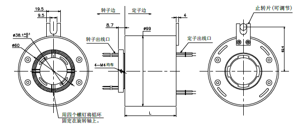如圖所示:將導電環裝在傳動軸需要的位置,用轉子上四個 |